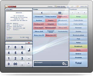 A special functionality of the KORONA.pos is the real-time updating of the receipt. The current item list is shown exactly how it will be on the final receipt. In addition, the entire receipt can be scrolled through with a flick of the finger and specific items can be selected to modified or cancelled. It all works so easily and intuitively that you won’t want to do without this convenience again.
